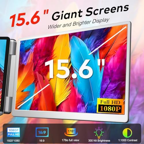 - 【14" FHD Visual Experience】This laptop monitor extender features 1920*1080P Full HD resolution, with 300 nits brightness, 100% NTSC color gamut, 16:9 aspect ratio and 1000:1 contrast ratio which bring you a rich visual experience. You can set the brightness, contrast, backlight and color temperature of dual monitor according to your needs. Protect your eyes from eye fatigue caused by prolonged use