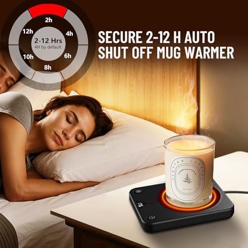 - Efficient Coffee Warmer for Desk Auto Shut Off - The mug warmer for desk is integrated with a continuous, stable 20-25 W heating element. Our coffee cup warmer adopts a 3.7inches diameter, high-strength, high-temperature resistant tempered glass heating plate. By pressing the right-hand button, you can choose to switch the coffee warmer for desk off automatically after 2H, 4H, 6H, 8H, 10H, 12H. The default setting is 4H. Never worry about forgetting to switch it off again.