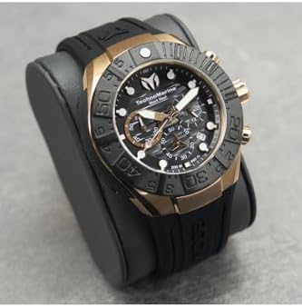 TechnoMarine TM-523011 Men's Watch, Reef Black Collection, Black Silicone Strap, Rose Gold Toned Case 45MM Chronograph