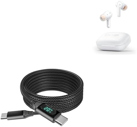 BoxWave Cable Compatible with Donner DoBuds ONE - PowerDisplay PD Cable (6ft) - USB-C to USB-C (100W), LED Wattage Info Extra Long Braided Nylon - Jet Black