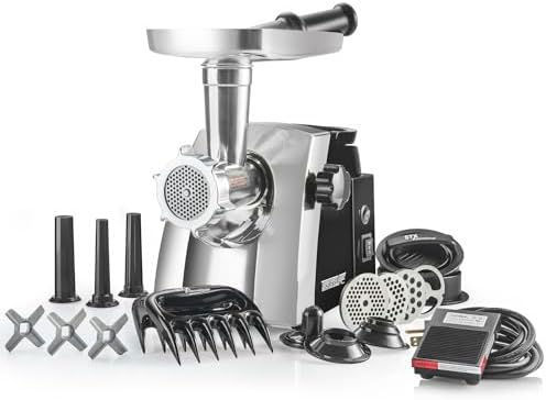 STX International Turboforce Cadet 2000 Series Electric Meat Grinder | 6-in-1 Multifunctional | Foot Pedal | Sausage Stuffer | Kubbe Maker | 4 Grinding Die | Stainless Steel Blades & More Included