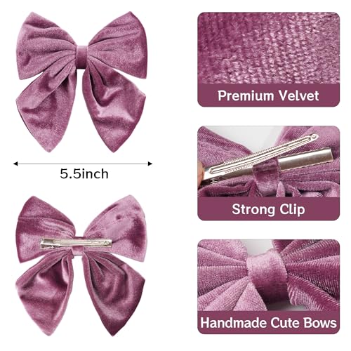 - Soft Hair Bows: Handcrafted from high-quality velvet fabric, these bows are both exquisite and durable. The 5-inch soft hair bows are attached to sturdy alligator clips on the back, ensuring they stay securely in hair all day, even on fine hair