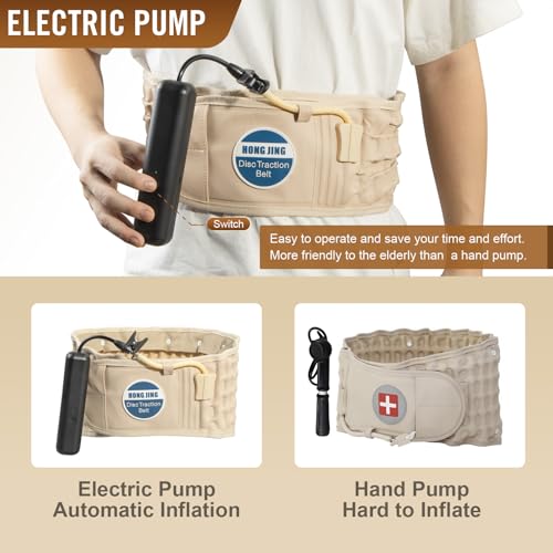 HONGJING Decompression Belt with Electric Pump for Lower Back Pain Relief - Inflatable Back Reliever Lumbar Support for Men Women, One Size Fits 29-49 Waist