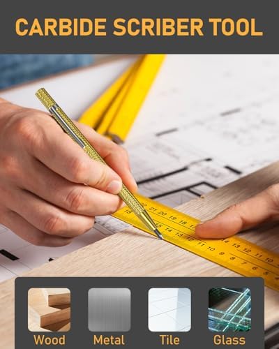 - MULTI-USE CARPENTER TOOLS FOR VARIOUS APPLICATIONS: This carpenter pencil set includes a carbide scribe tool and a positioning center punch, perfect for precise engraving on tough surfaces such as metal, tile, glass, ceramics, and wood. Additionally, we include a square level and a round level for use in different scenarios. Paired with a 4B eraser for easy error correction, this set is ideal for fine work
