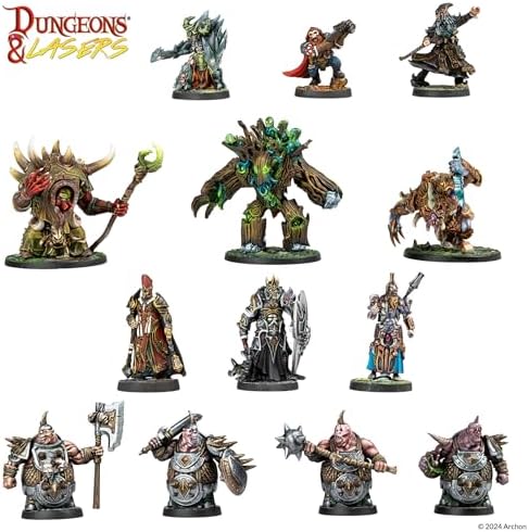 Dungeons & Lasers Deuslair Core DND Miniatures Set - 99 Models with Scenic Bases - 5E Compatible for use with D&D and Tabletop RPG Games - Unpainted and Unassembled - for Ages 14 Years +