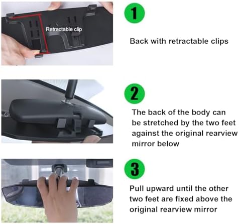 - 【Easy Attachment】: Each mirror features a retractable clip on the back that allows for easy attachment. To attach, simply position the mirror over your existing rearview mirror and snap it into place. Then, it will hold firmly in place for stable performance while driving.