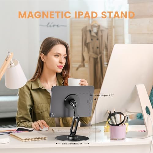 Magnetic ipad Stand, Foldable Aluminum Alloy Tablet Stand for Desk, 360° Adjustable Rotatable Tablet Holder, Portable Accessories for Home Office Meeting Room