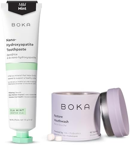 Boka Fluoride Free Toothpaste - Nano Hydroxyapatite - Ela Mint 4oz and Travel Size Mouthwash Tablets - Hydroxyapatite, Fluoride/Alcohol Free & Eco-Friendly