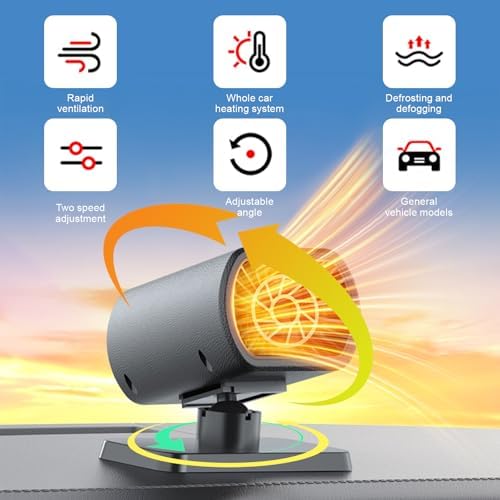 - 【Fast & Efficient】: The 12v car heater is made of ABS material and pure copper cable, the air outlet of the car heater adopts a centralized design, which is rapidly heated within 10 seconds, can quickly heat up and dissipate heat, solve the problem of car windshield fogging and frosting, no more waiting in cold weather, ensure driving safety.