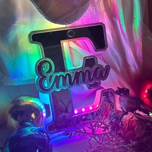 - Personalized Name Mirror Light- Different from ordinary Light, this custom letter mirror lamp allows you to personalized your name or any text on the mirror surface. The charm LED light and cool mirror surface make it more romantic and beautiful for your room decor