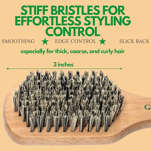 GranNaturals Hard Bristle Slick Back Hair Brush for Men & Women with Thick Curly Hair - Stiff Reinforced Nylon Small Hairbrush for Smoothing, Waves, Beard, Fades, Locs, Dreads