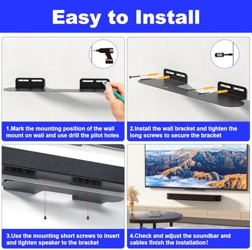 - 【Easy Install】 Our Soundbar Bracket is designed for quick and easy installation and includes all the necessary hardware to mount this speaker bracket to a wood stud, brick or concrete wall in just minutes!