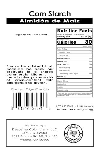 15 lbs Pure Corn Starch Powder for Cooking Bulk - Includes a 100% Pure Bag of Corn Starch Powder Bulk by Despensa Colombiana - Perfect Fecula de Maiz - Almidon de Maiz for Cooking and Baking