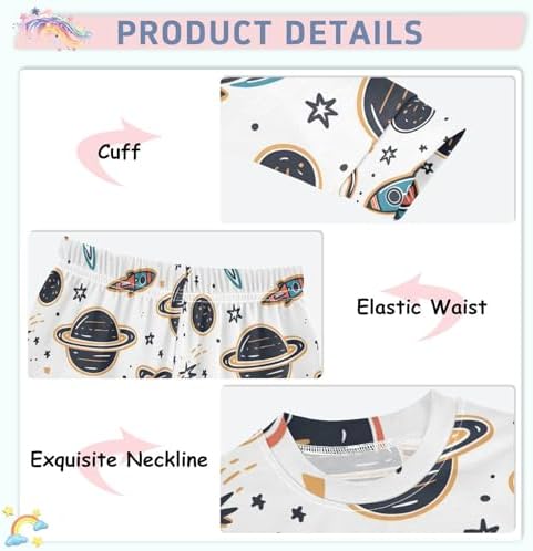 ALAZA Cartoon Space Rockets Planets and Stars Pajamas Set Snug-fit Long Sleeve Sleepwear,18 M