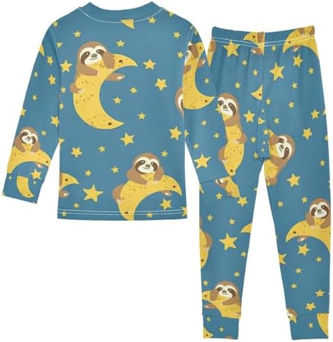ALAZA Sloth Moon Stars Blue Background Pajamas Set Snug-fit Long Sleeve Sleepwear,18 M