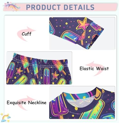 ALAZA Hand Drawn Neon Stars and Dots Pajamas Set Snug-fit Long Sleeve Sleepwear,18 M