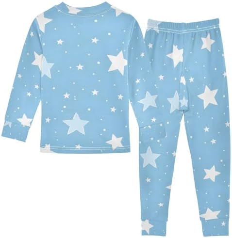 ALAZA Light Blue and White Stars Pajamas Set Snug-fit Long Sleeve Sleepwear,18 M