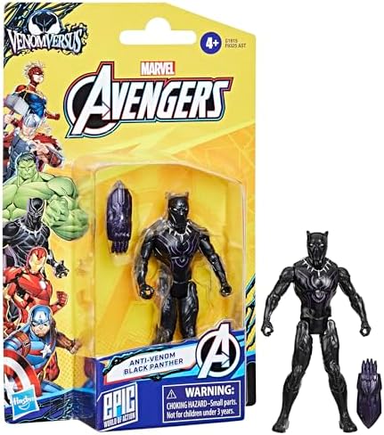 AVENGERS Marvel VenomVersus Epic World of Action Anti-Venom Black Panther Figure & Accessory, 4-Inch (10 cm) Super Hero Toys for Kids Ages 4+