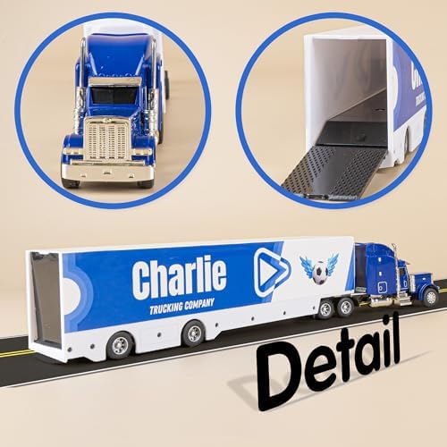 MT WORLD Toy Truck Personalized Semi Truck Toy with Name 1/48 Scale Diecast Model Tonka Container Car Carrier for Boys Teens Birthday