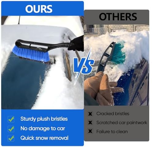 - 【Snow Brush】: This snow brush has a wide brush head and thick bristles, which allows you to quickly and easily sweep away all that light, loose snow from your car, reducing your preparation time for going outside and providing you with a clear view.