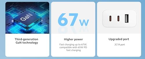 Xiaomi 67W GaN Charger (A07ZMUS) Triple Port (2 Type C + USB) (C to C Cable Included) USA Outlet Compatible with Android iPhone Ipad etc - White