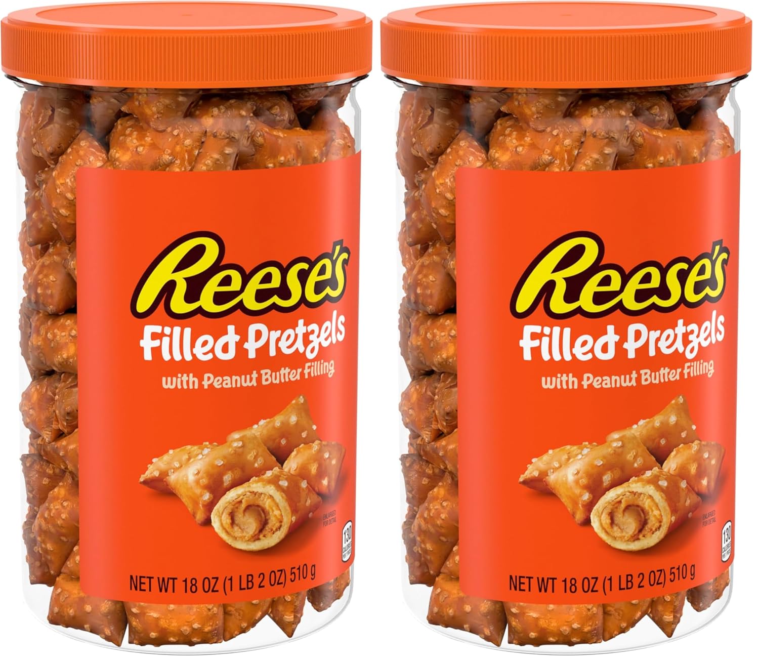 - You will receive a 18oz jar of Reese's Filled Pretzels. Don’t miss out on this delectable combination that offers the perfect blend of sweet and salty flavors