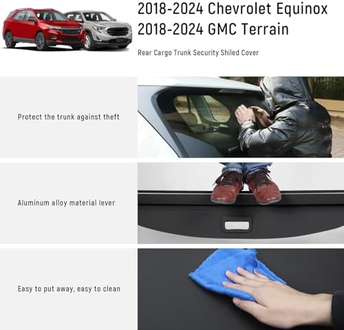 - Tailored specifically for the 2018-2024 Chevrolet Equinox/GMC Terrain,this cargo cover is meticulously crafted to perfectly fit both the your vehicle trunk,ensuring a flawless and fashionable appearance.