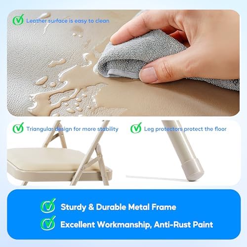 - Comfortable seat: The folding chair's backrest and seat cushion feature high-density sponge padding, giving strong support for your back and relieving spinal pressure. The high-quality PU leather gives an excellent touch and make it easy to maintain
