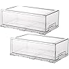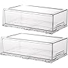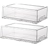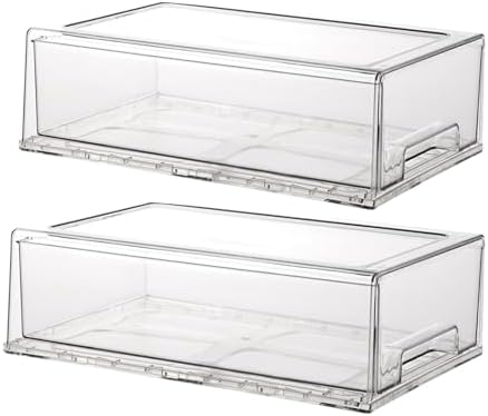 Stackable storage drawers, clear pull-out organizer with handles and non-slip pads for kitchen, refrigerator,office desktop, pantry and shelves, perfect for organization and storage (2 Pack, Large)