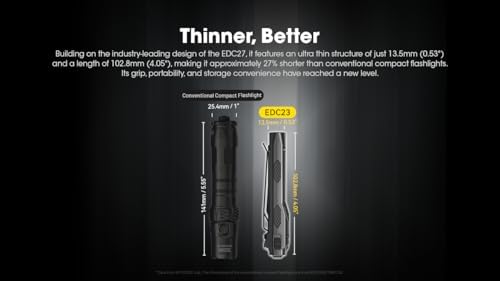 EdisonBright Nitecore EDC23 Saber 2500 Lumen USB Rechargeable Flat/Ultra-Slim Body LED Flashlight with EBR Charging Adapter