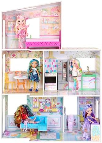 Rainbow High Color & Play 3-Story Doll House, Design All Walls & Floors with Washable Markers, Wood Playset Includes Toy Furniture and Accessories, Gift for Kids 4+