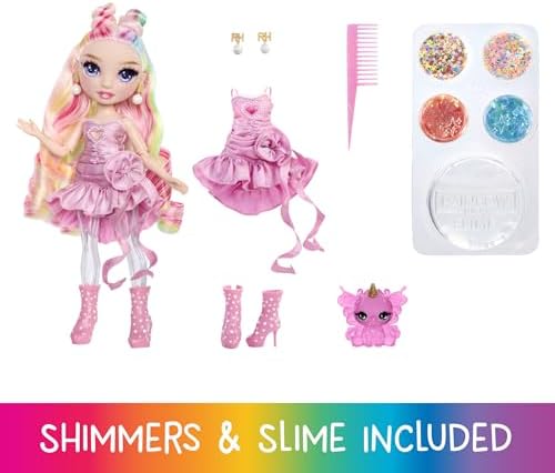 Rainbow High Rainbow Shimmers with Slime – Bella, Pink 11”, Create a Rainbow Fashion Doll, Slime Kit