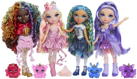 Rainbow High is more magical than ever—now you can create your own Rainbow Doll! The Rainbow High Rainbow Shimmers set includes a slime kit, allowing you to mix and customize dazzling colors, textures, and shapes. Use the slime to create a unique rainbow effect in your doll’s legs, transforming her look with shimmering hues. She also features stunning rainbow highlights woven throughout her hair, along with delicate eyelashes and mesmerizing glass eyes that make her truly stand out. Like all Rainbow High Fashion Dolls, she boasts exquisite details and full articulation, making her easy to pose, style, and play with. But the magic doesn’t stop there! She also comes with an adorable pet, complete with wings and a horn, adding even more charm to your rainbow adventure! Collect all the friends: Iris in Rainbow, Bella in Pink, Skyler in Blue and Violet in Purple.