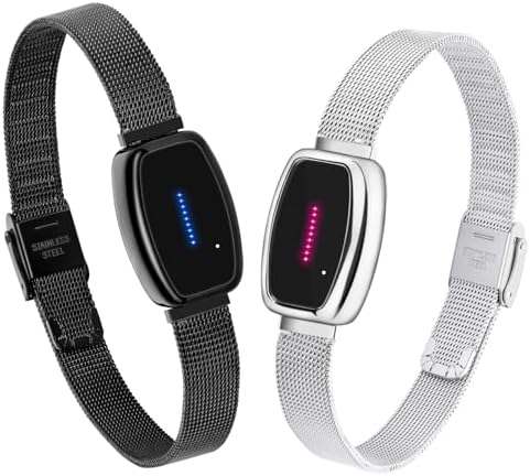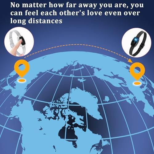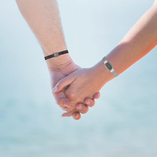 Long Distance Touch Bracelets,Vibration & Light up Couples Bracelets, Remote Smart Matching Couples Bracelet for Lovers Long Distance Relationship Girlfriend Boyfriend Xmas Gifts Black Silver Jewelry