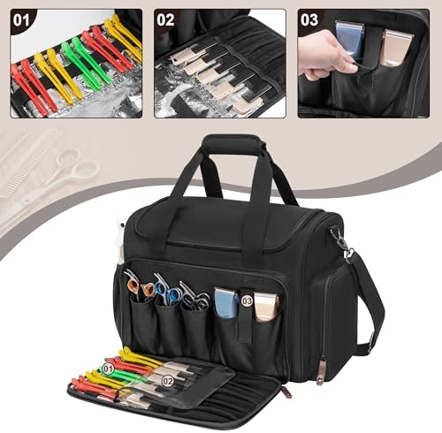 BAFASO Large Insulated Barber Case with a Semi Detachable Divider and 2 Removable Pouches, Hairstylist Traveling Bag Holds Various Hair Cutting Tools, Black