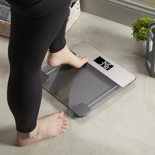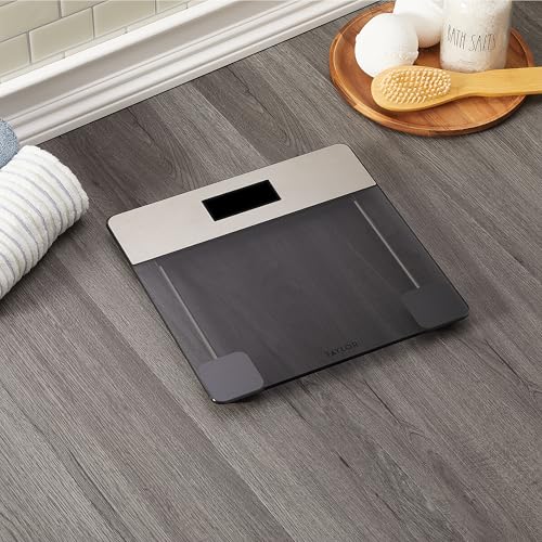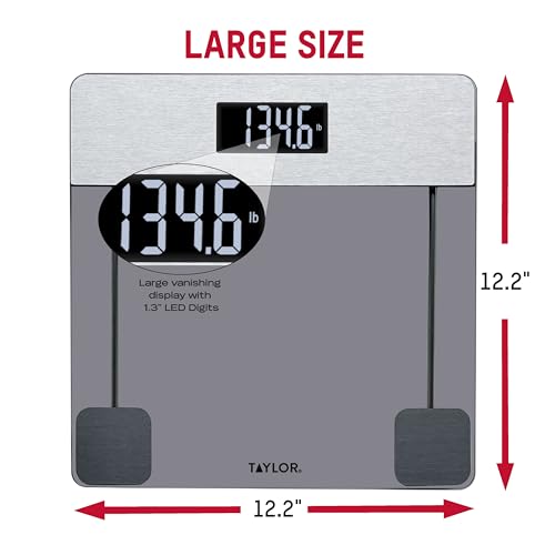 Taylor Digital Glass Bathroom Scale, Scale for Body Weight, Digital Weighing Machine for People, Tinted Glass and Brushed Stainless Steel Accents, 440 lb Capacity, Vanishing LED, Tinted, Clear