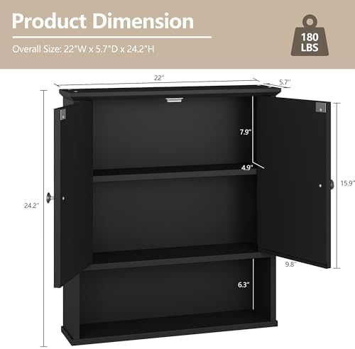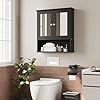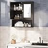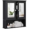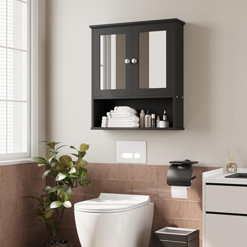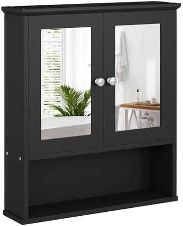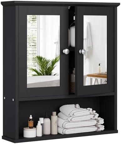 Walsunny Medicine Cabinet Mirror with Storage, Wood Bathroom Wall Cabinet with 2 Vanity Mirror Door and Adjustable Shelfs Wall Mounted for Rv Bathroom Restroom Kitchen, Black