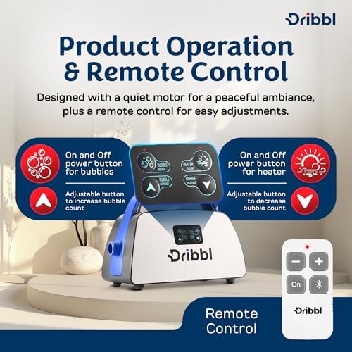 - FULL-BODY RELAXATION WITH REMOTE CONTROL: Measuring 47.2" x 15.75", the Dribbl bath mat offers complete support for your entire body. Adjust bubble intensity and heat settings with the included remote control, creating a warm, spa-quality bath every time.