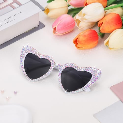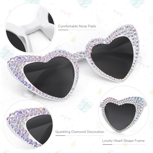 Etercycle Heart Sunglasses, Shiny Rhinestone Sun Glasses For All Party, White Glasse Bride Gifts Women Sunglasses For Bachelorette Party Decorations