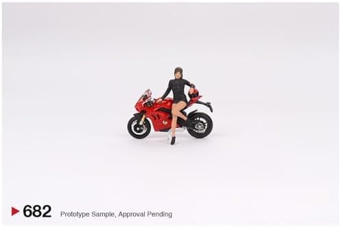 Diecast Model Car Motorcycle Compatible with Mini GT 1:64 Ducati Panigale V4 S Motorcycle with Model Girl Figure, Red MGT00682