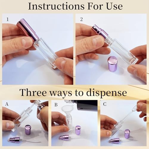 - 【Fine mist atomization, convenient refilling】Press the pump head design, these atomizer sprayer for perfume are equipped with high-precision nozzles to release fine and even mist, which is perfectly suitable for perfume distribution. Equipped with 1 funnel, 1 dropper, 1 dispensing pump*1, simplifying the refilling process, allowing you to easily inject your favorite perfume