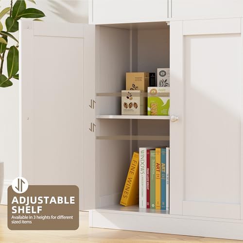 Walsunny Bathroom Storage Cabinet, Floor Storage Cabinet with 2 Drawers, Doors and Adjustable Shelves, Freestanding Wood Organizer for Bathroom Living Room Kitchen Entryway, White