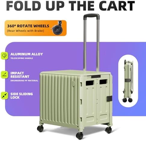 • Foldable Design for Compact Storage and Portability: When not in use, our foldable cart collapses into a compact size, saving valuable space in your home, car, or classroom. Its lightweight yet sturdy construction makes it easy to carry and store, ensuring it’s always ready for your next task.
