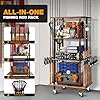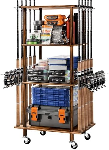 - 【3/4 Layers Fishing Gear Storage for 10 Rods】The fishing rod rack cart can be used to hold rod&reel combo, tackle boxes and other accessories. With 3/4 layers, there’s enough room to classify fishing equipment in order, easy to take out rods. And it is MOVABLE, applied to multiple storage scenarios such as garage, living room, balcony, garden, anywhere you need it. 2-inch 360°wheels help it slide smoothly. Meanwhile it protects your floor from scratches when you have heavy fishing gear.
