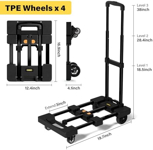 - Expandable Platform: Fits Big or Small. Deck extends 17" to 26" for oversized boxes or daily parcels. Fold it to 16.9" × 12.4", slimmer than a laptop bag. Stash it in closets, trunks, or by the door—always ready to work
