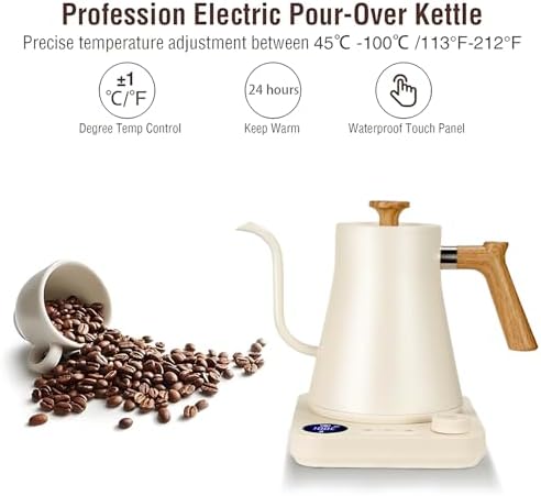 Electric Kettles, Gooseneck Electric Kettle, ±1℉ Temperature Control, Stainless Steel Inner, Quick Heating, for Pour Over Coffee, Brew Tea, Boil Hot Water, 0.9L (White)