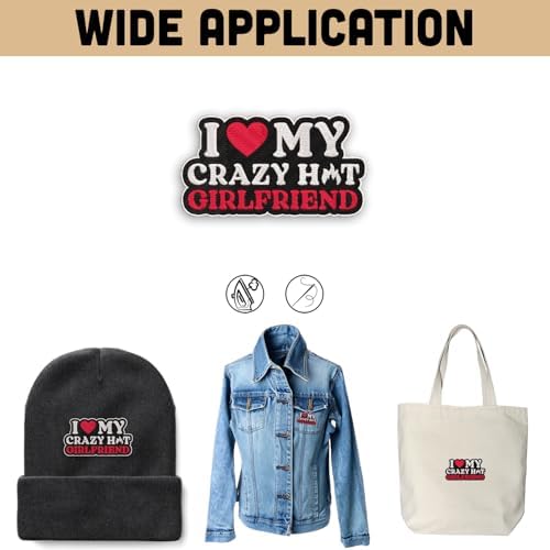 VOTANTA (2 PCS) -I Love My Crazy Hot Girlfriend Patch, Funny Boyfriend Girlfriend Patches, Valentine Gifts for Couple Sew On Embroidered Iron-On Patches for Clothing Backpack Hat Jacket | 3 inch
