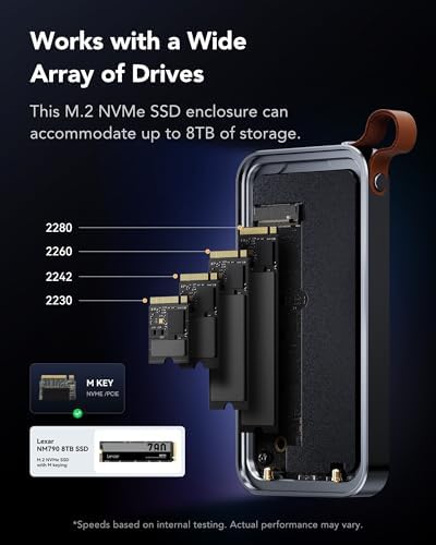 - Easily enclose an M.2 drive to repurpose it as a portable SSD. This SSD enclosure is built with multiple layers of heat dissipation, offers 40Gbps transfer speeds, features Thunderbolt 4 compatibility, and is designed to work with 2280, 2260, 2230, and 2242 SSDs