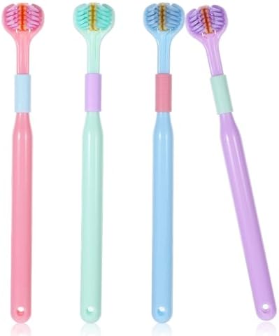 4Pcs 3 Sided Toothbrush Adult, Deeply and Thoroughly to Clean Teeth and Gums Colorful Soft Bristle Three Sided Toothbrush Set for Adults Teeth Gum Care