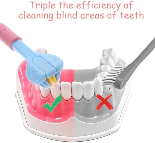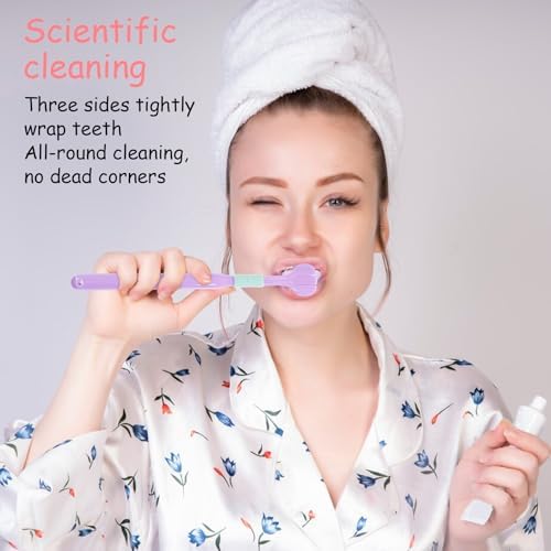 - 【High-quality materials】The triple bristle toothbrush is made of high-quality bristles and safe plastic material to ensure that the three-sided toothbrush is comfortable and durable. At the same time, the triple-headed toothbrush is gentle and non-irritating to teeth and gums, suitable for long-term use.
